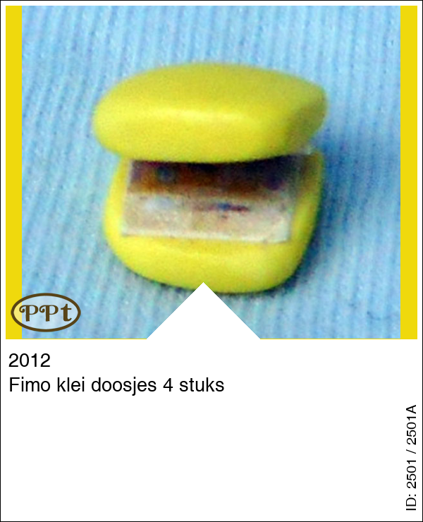 Fimo klei doosjes 4 stuksUpdate: 22-02-2023 Dit zijn 4 kleine fimo items die ik ook heb gekocht als doosjes nagemaakt van de Polly Pockets. Binnen in zijn papiertjes waarop te zien is hoe het doosje eruit ziet.