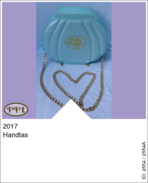 Een super leuke handtas in de vorm van een schelp (van deze vorm is ook een doosje van). Er zit een goudkleurige ketting bij en deze kan je ook los maken. Als je de tas open maakt dan zie je de binnenkant van Starlight Castle uit 1992 super leuk om te zien!!