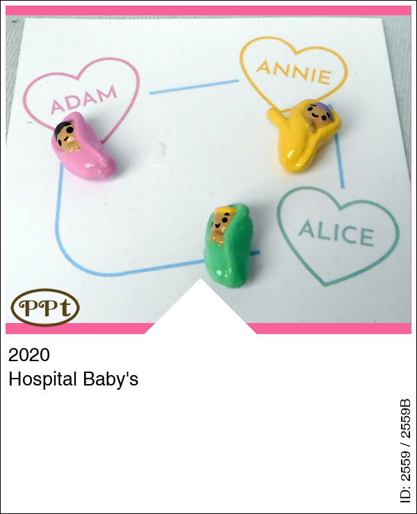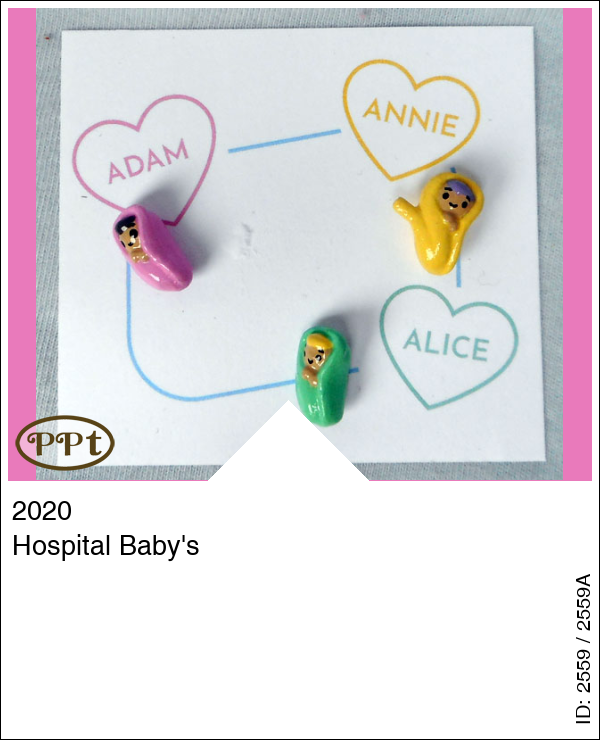Hospital Baby'sUpdate: 16-02-2023 Dit zijn 3 nagemaakte baby's voor het Childrens Hospital 1995, ze komen uit Spanje. Ze zijn super gaaf en ze heten Roze is Adam, Geel is Annie en groen is Alice.