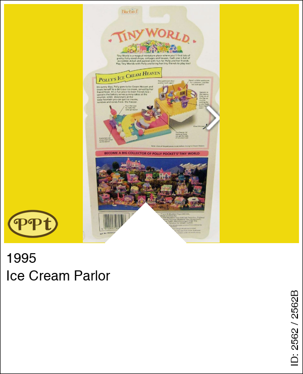 Lekker naar vanille ruikend huisje. Aan de voorkant staat een ijsje op een plateau waar je aan kan draaien. Bij de ingang van het huisje staan 2 ijshoorntjes en in de tuin staat ook 1 ijsje, ook staat er een bankje. Binnen is een ijsco winkel met toonbank en trap naar de keuken waar het ijs gemaakt word en de toiletruimte. Veel bewegende items. Met Polly en Tawny (Rosie) met ijslepel in haar handje.