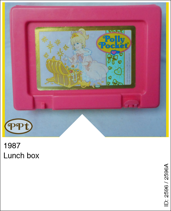 Lunch Box met leuke afbeelding voorop van Princess Polly met schatkist. Princess Polly staat ook met gezicht op de zijkant van het doosje. Het doosje is gemaakt door Bluebird in 1987! De sticker van Polly Pocket is er in 1994 opgeplakt en verkocht. Super leuk om dit te hebben in mijn verzameling.