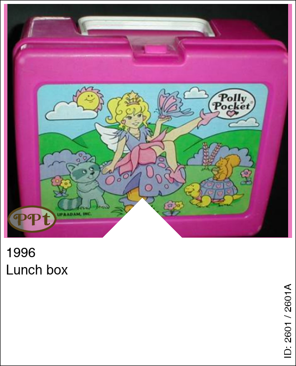 Leuke lunch box met plaatje van Polly op een paddenstoel en diertjes om haar heen.