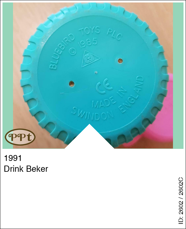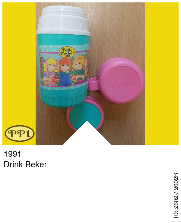 Drink Beker Leuke drinkbeker met tekening waarop Polly met haar vrienden touwtje knopen (spelletje met touw) aan het doen is. Onder de beker staat 1985 waarschijnlijk is deze beker toen gemaakt en het plaatje er in 1991 opgeplakt is.