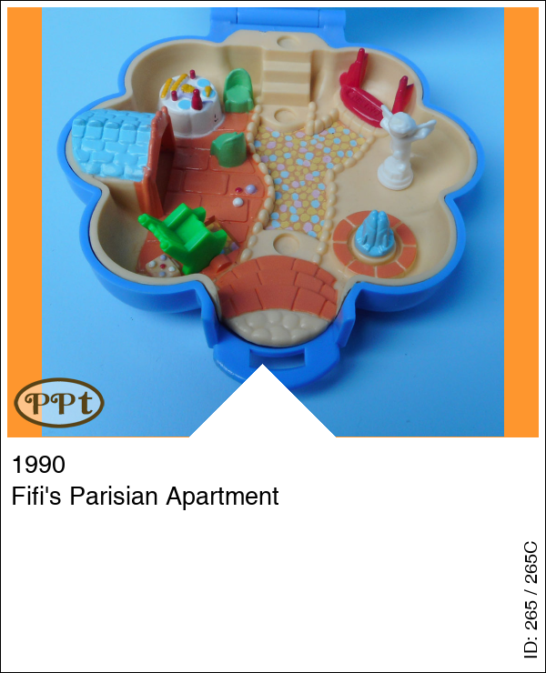 Dit is een blauw doosje in de vorm van een bloem, en binnen zie je aan de bovenkant de voordeur en een balkon van een huis en het uitzicht is de Yffeltoren. Beneden is voor de deur van dat huis met een hondehok en een gedekte tafel compleet met stokbrood, ook zie je een echt bewegende schommelstoel en een beeld en de ingang van de metro. Met Fifi, Henri haar zwarte en Henrietta haar witte poedel.