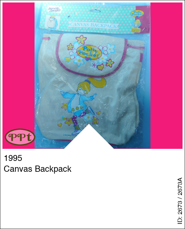 Canvas BackpackUpdate: 17-02-2023 Super leuke rugzak met afbeelding van Polly Pocket, je kunt hier je leuke doosjes van Polly in meenemen. Wat een geweldige rugzak met die roze hengsels aan achterkant.