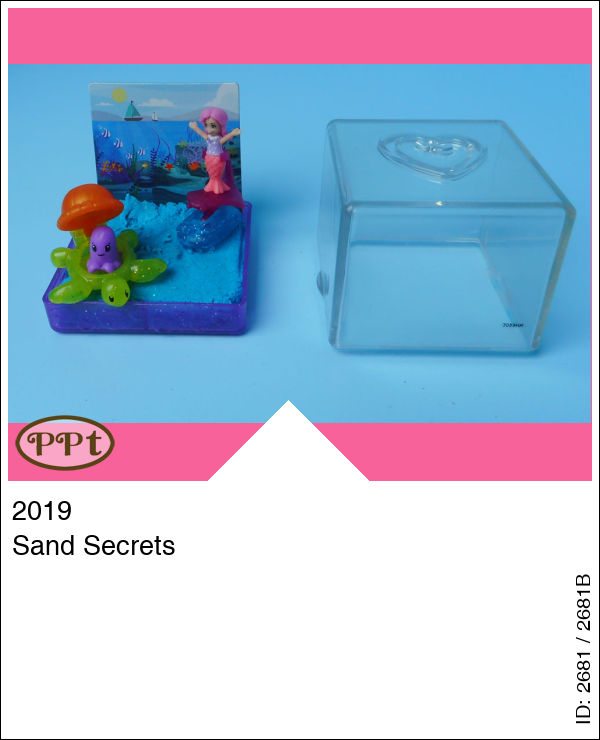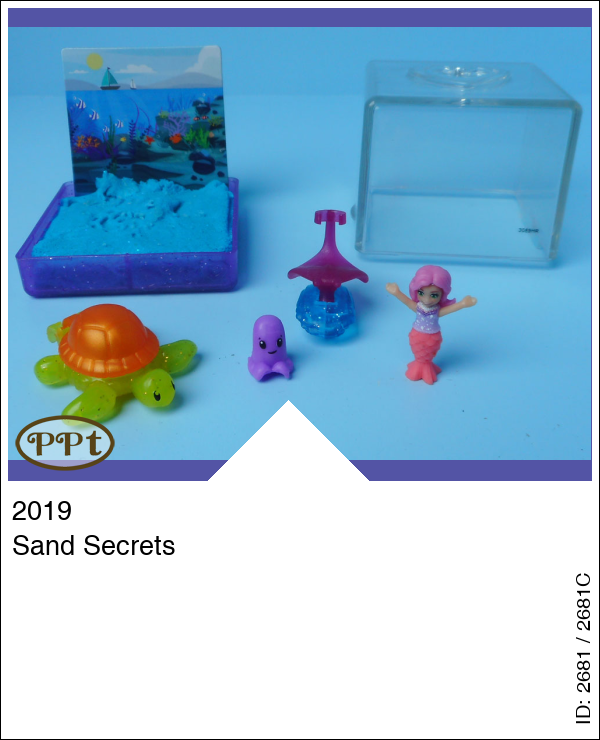 Er zijn 10 verschillende soorten! Dit is het onder de zee, met zeemeermin Polly, een golf met een rog en Polly kan je klemmen in zijn staart, paarse inktvis welke je onder het schild van de schildpad kan doen, Onder de schildpad zit een stempel daarmee kan je in het zand (wat erbij zit) een stempel maken.