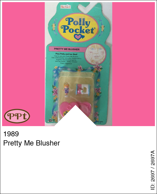 Pretty Me BlusherUpdate: 29-12-2021 Dit is een roze hartjes doosje met daarin blusher voor je wangen. Met het blauwe bedje met een rose dekentje en hierop ligt een beertje. Met Polly.