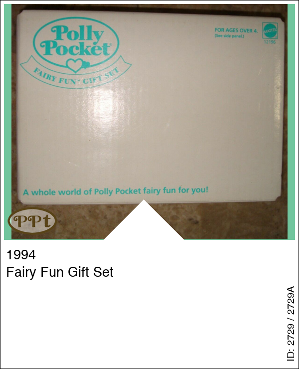 Fairy Fun Gift SetUpdate: 02-03-2023 Inhoud: Fairy Wishing World Compact, Fairy Spells Locket, Tulip Petal Fairy Ring, Stardust Fairy Earrings, 3 Polly Pocket poppetjes en 1 zwaantje.