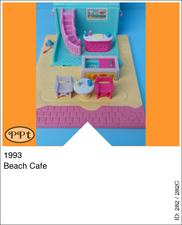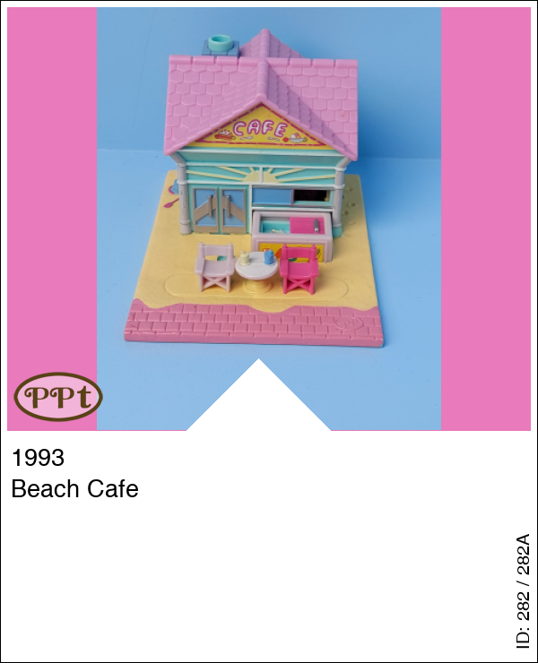 Een leuk huisje met op het terras een diepvriesje met ijsjes en een terrasje met tafel en 2 stoeltjes. Binnenin zie je een toonbankje en een trapje naar de bovenverdieping waar en keukentje en een tafel met echte draaistoeltjes. Dit huisje is compleet met Polly en Little Lulu.