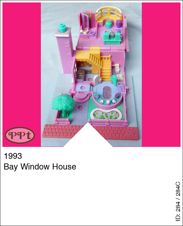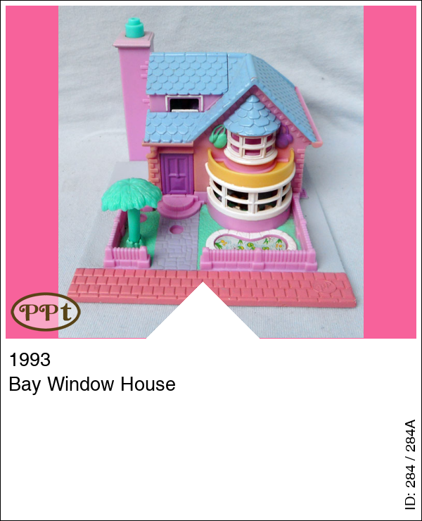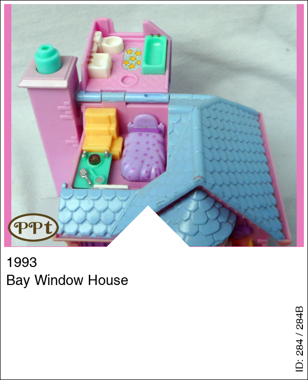 Dit is een huisje met licht. In de voortuin is een vijvertje, een boom en een erker. Het licht werkt als je op de schoorsteen drukt. Als je het zolderdakje opent zie je daar een badkamer en een trapje naar het bed en tafeltje met lampje (werkt) en borstel en spiegel. Als je het dak van het huisje omhoog doet en komt via de voordeur in een hal met twee deurtjes. Ga je door het witte deurtje kom je in de keuken en door het groene deurtje in de toilet met wastafel, ga de trap omhoog en je komt uit in de woonkamer met een stereotoren en boxen een tv en een bank met tafeltje waar een lamp op staat (werkt) ook heb je nog een ruimte waar een kaptafel met lamp (werkt) en stoel en een deurtje met spiegel en daarachter is de kledingkast. Met Polly, Jessica met ballonnen, Tamsin met cadeau, Emily met geel jurkje en feesthoedje.