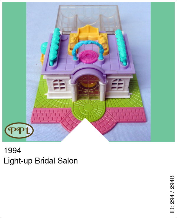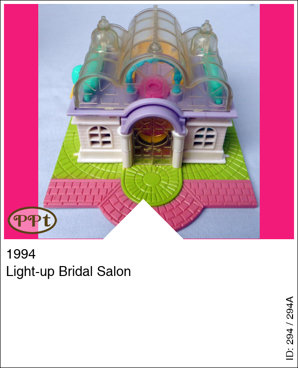 Dit huisje is met licht en heeft een doorzichtig dak wat ook omhoog kan. Aan de buitenkant staat een boom wat tevens het lichtknopje is. Als je het glazen dak omhoog doet zit daaronder een tuintje met draaiplateau waar de popjes hun jurkjes kunnen showen, ook staan er twee echt werkende lampjes. Wanneer je door de glazen deuren naar binnen gaat en de zijwandje weg klapt dan kom je in de bruidswinkel terecht je ziet daar een naai atelier met naaimachine en stoffen en aan de andere kant een toonbank met kassa. Als je de trap oploopt dan kom je in een showruimte waar ze de jurken kunnen passen en showen op het draaiplateu, er zijn lichtjes en een spiegel.