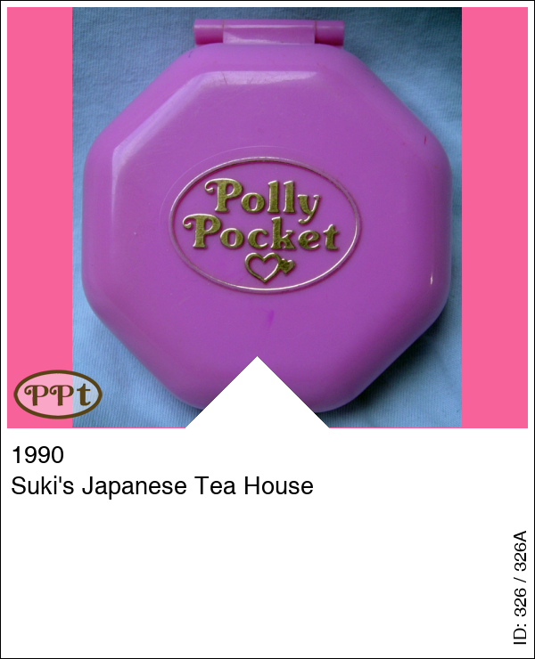 Een 6 hoekig doosje met binnen een Japans Theehuisje compleet met de bekende Japanse beelden en relaxtuin en gedekte tafel. 2 Japanse Popjes genaamd Atsuko met het witte pak aan en Suki met het paarse jurkje.