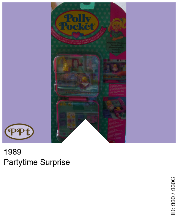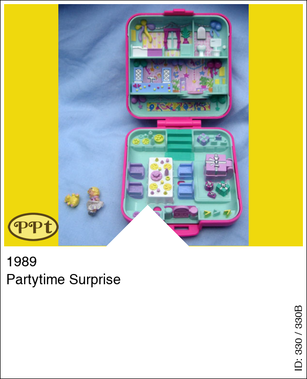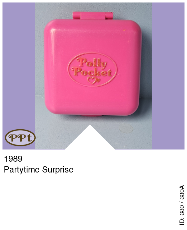 Een rose vierkant doosje met aan de binnenkant een verjaardagsparty compleet met taart en disco en cadeau wat open kan.