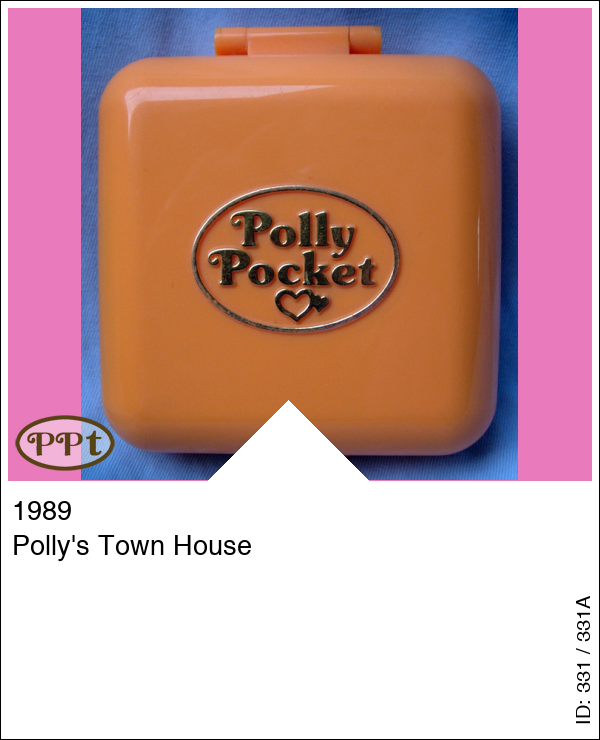 Dit is een oranje doosje met binnenin een woning compleet met woonkamer, keuken, slaapkamer, badkamer en voordeur. Met Polly en hondje en poesje.