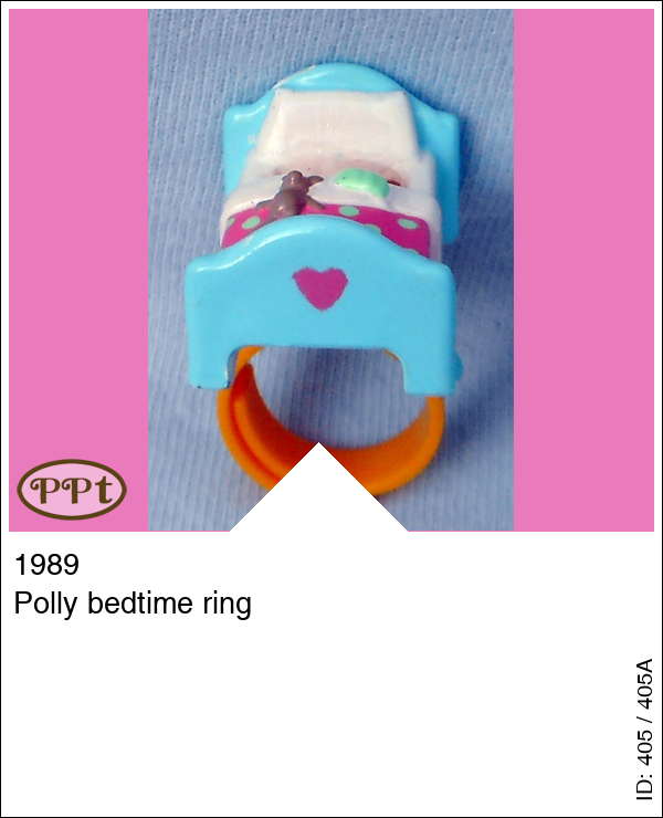 Polly bedtime ringUpdate: 22-02-2023 Dit is een gele ring met een blauw bedje en roze dekentje en bruin beertje.