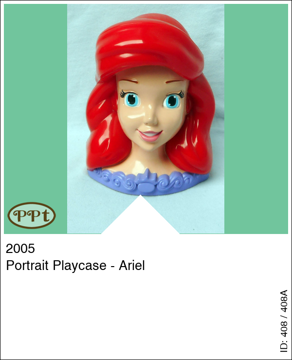 Je kunt het hoofdje openmaken en binnenin is een huisje met beneden een foto van een schelpenstoel en je kunt Ariël op een rondje zetten en d.m.v. een wieltje rond laten draaien, hier staat een microfoon om ze te laten zingen. Boven is een schilderijtje met botje, Ariëls schelp die je naar beneden kan klappen, een tafel met spulletjes erop en een gouden kussentje. Compleet met Ariël, rokje. Als extra zit er een halsketting bij met een doosje (schelp) en je kunt er binnenin een foto doen.