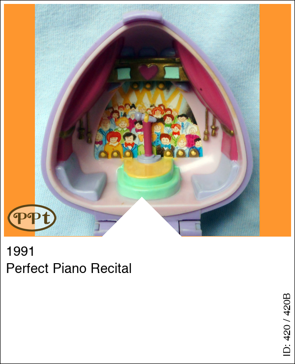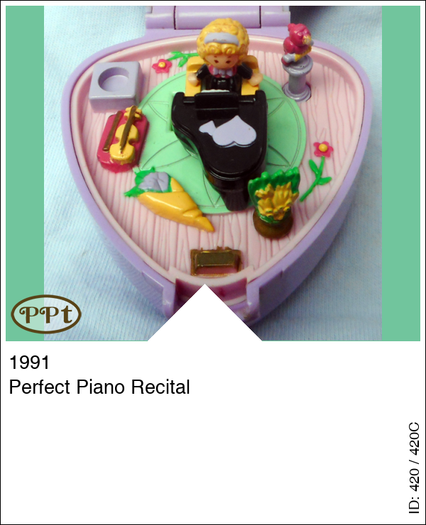 Perfect Piano RecitalUpdate: 21-02-2023 Dit is een hoog driehoekig doosje met binnenin een pianoconcert. De piano kun je ook gebruiken als ring en er is ook een viool en bloemen. Met Polly, ring, piano, een papegaai op een standaard en het plantje.