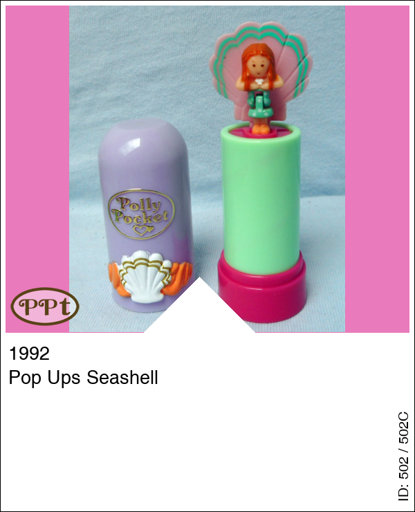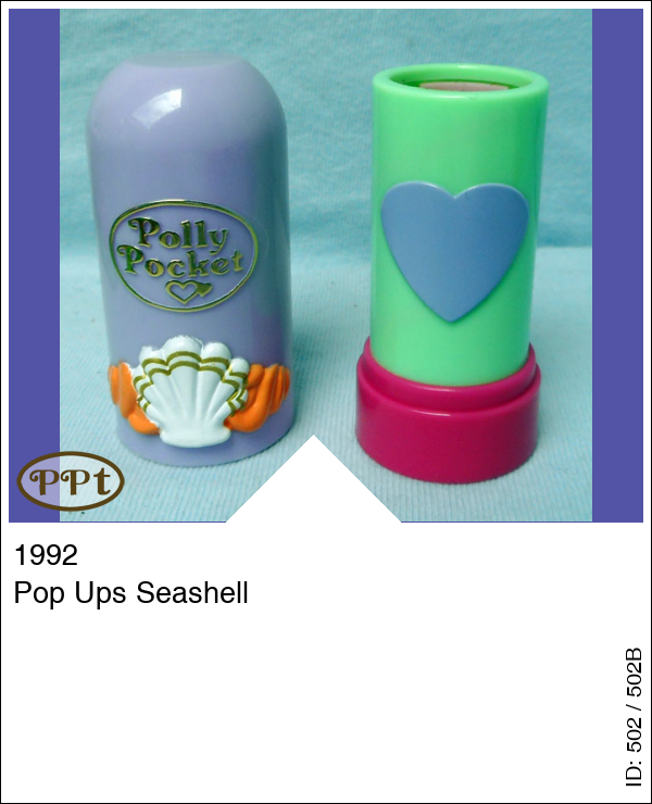 Pop Ups SeashellUpdate: 21-02-2023 Lila Lipstick en als je hem openmaakt is het groen met een lila hart en als je de lipstick omhoog draait dan komt er een popje omhoog en achter haar is een schelp.
