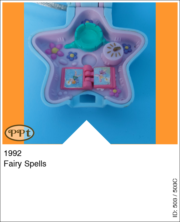 Een klein doosje in de vorm van een ster. Binnen kun je aan de bovenkant een foto doen achter een schermpje met een hartje. Beneden zie je een boomstam als stoel een zonnewijzer en een leesboek wat je open kan klappen en daar zie je elfjes. Met Fairy Lulu.