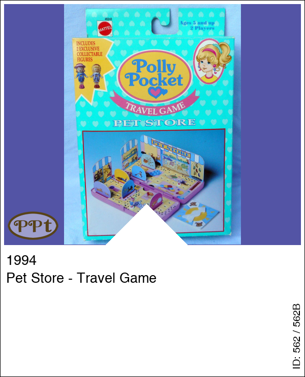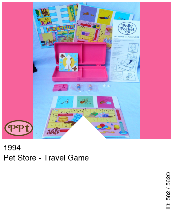 Dit is een reisspel in een roze doosje. Er zitten 2 popjes bij en een draaischijfje. Je legt het bordspel klaar en je zet de dierenkaartjes in de daarvoor bestemde gleufjes en d.m.v. het draaischijfje te draaien loop je de stapjes verder met het popje. Een soort ganzenbordspel. Met Polly en Midge.