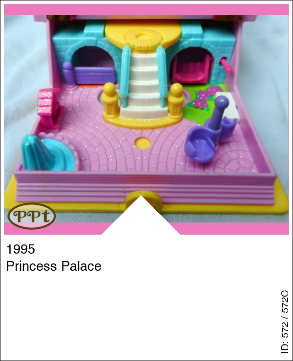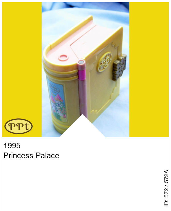 Dit is een klein geel boekje met op de rug een afbeelding van een kasteel. Binnenin gaat er een glitterwereld open met een hemelbed en een badkuip, toilettafel, stoeltjes en een gordijnenboog. Als je de trap naar beneden gaat dan kom je in de stallen terecht en is er een waterputje en draaistoeltjes en een schommelbank.
