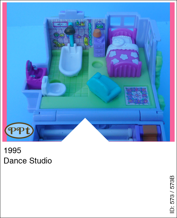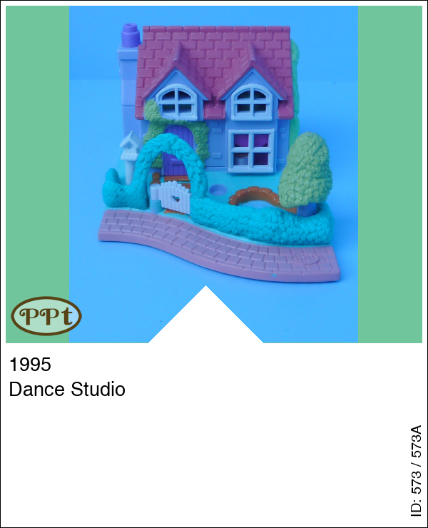 Een mooi blauw/lila huisje met een boompje en een vogelhuisje en een vijvertje. Binnenin zie je op de benedenverdieping een spiegelwand om te oefenen met dansen en wanneer je een popje voor de spiegel zet en aan het stoeltje beweegt dan gaat het popje ook bewegen en voor de muziek is er de piano. Op de bovenverdieping is een bed met nachtkastje en stoel en verder zie je een badkamer. Met Polly en Tiny Tina.