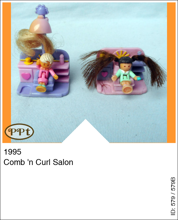 Dit is de kapper, je hebt een stoeltje waar je je haar kan laten wassen, en waar de shampoo op staat, en je hebt een stoeltje waar je onder de droogkap kan zitten, deze droogkap gaat echt omhoog en omlaag. Met Polly en Rebecca allebei met echt haar.