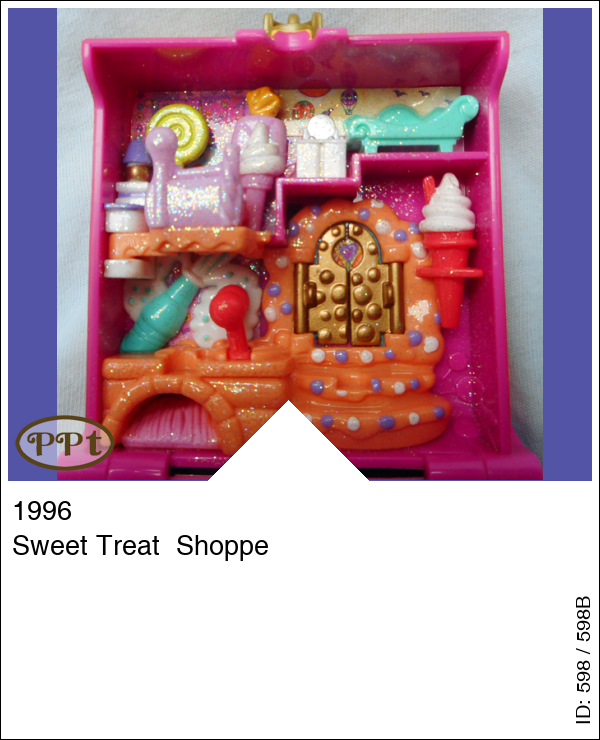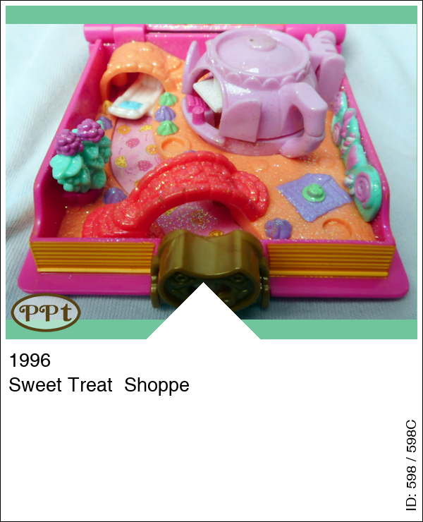 Dit is een roze boekje met daarop een sleutel(deze ontbreekt). Binnen zie je heel veel glitters en een theepot die open kan en in die theepot zie je een ijssalon. Ook vaart er een bootje op en neer door een roze gracht. Bovenin zie je een glitterbed met ijsjes en lollies. En achter de gouden deurtjes zie je een glitterstoel met allemaal lekkers. Met Tiny Polly, een vriendin, Gingerbreadman (oranje).