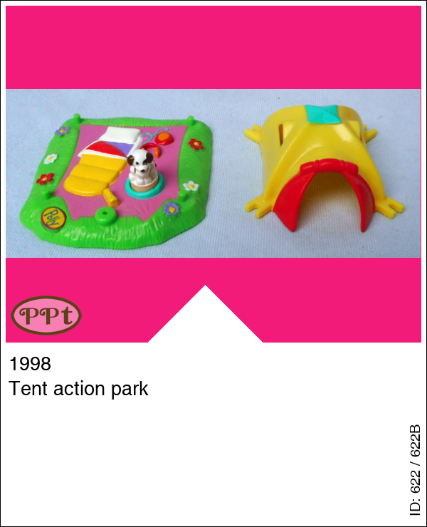 Tent action parkUpdate: 16-02-2023 Een leuk klein tentje op een grasveldje en dit tentje kan je van het grasveldje afhalen en los wegzetten. Onder het tentje zie je een slaapzak en een walkman. Met Polly, paars rugzakje en hondje.