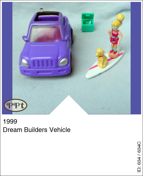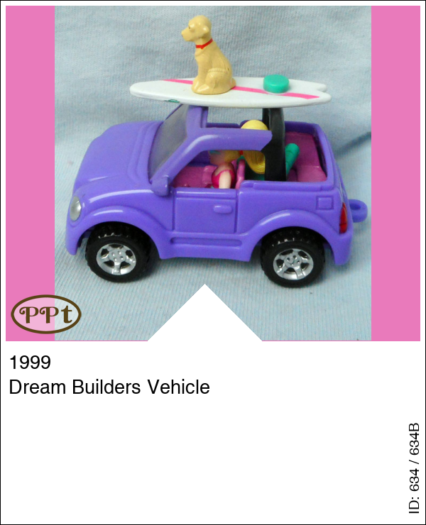 Deze paarse auto is een leuk item van polly pocket en je kunt polly achter het stuur zetten. De surfplank kan je vastmaken op het dak en de hond kan dan weer op de surfplank zitten. Achterin kan je de koelbox zetten. Met Polly, hondje, surfplankje en het koelboxje.