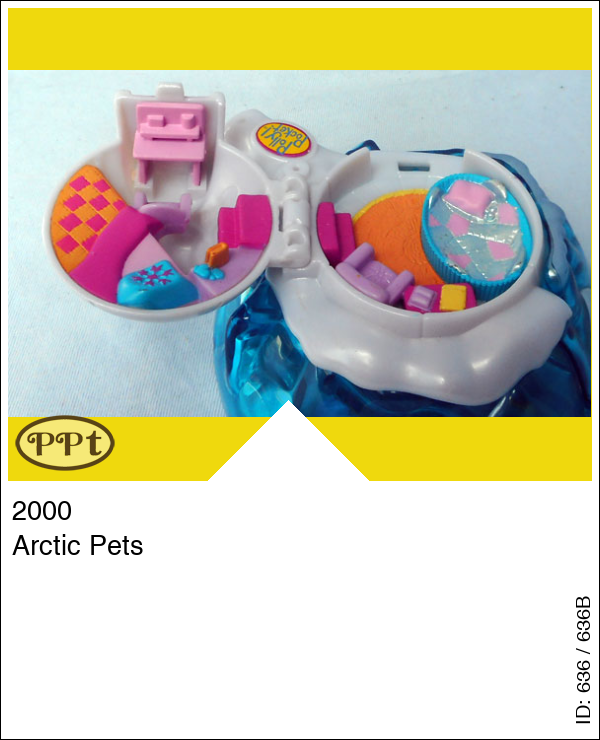 Dit is een iglo huisje wat boven op een blauwe berg staat. Als je de iglo opent dan zie je een knus huisje met grote mand en stoel, bed en kaptafel. Het onderste gedeelte draai je open en dan gaat er een fantastische ijswereld open met een pannetje op vuur, als je op een zilver bergje drukt komen er 2 visjes omhoog, zithoekjes en dan nog een klein verborgen hokje daar zitten de mandjes voor de pinguins. De slede met 3 honden ervoor, Polly, moeder-pinguin en 3 baby-pinguins.