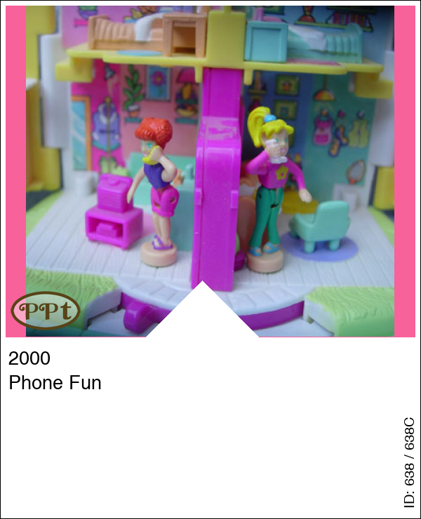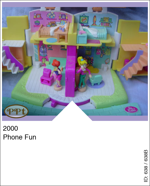 Kleine 2 onder 1 kap woning, en als je hem opent zie je de woonkamers en slaapkamers. Als je de popjes Polly en Lea op het rondje zet en je haalt het hendeltje over dan gaan hun armpjes omhoog en bellen ze elkaar, super leuk om te zien!!