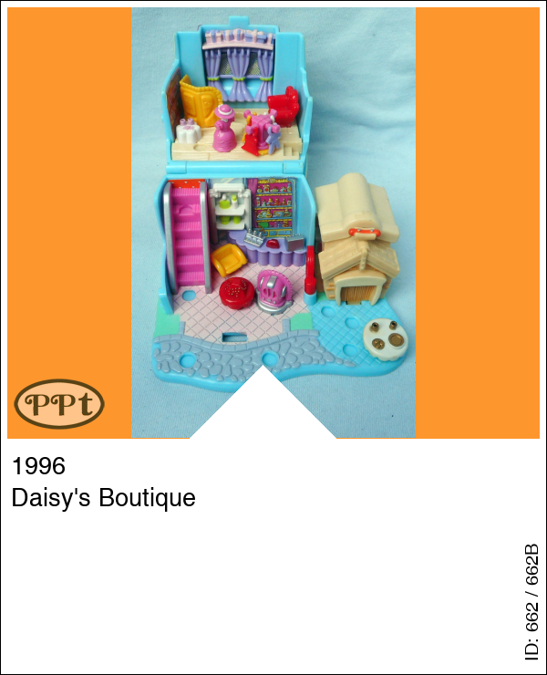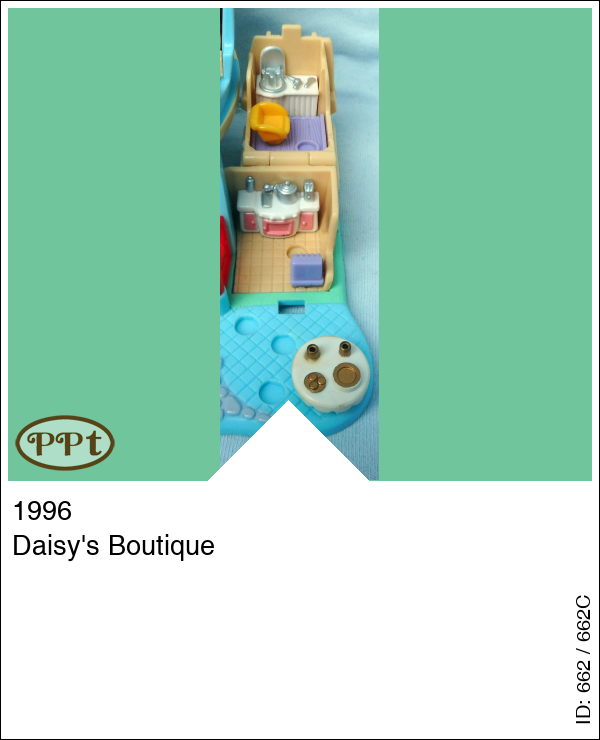 Dit is een kledingwinkeltje. Boven op het dak zijn 2 ligstoelen en een tafeltje. Naast het winkeltje staat een huisje met hotdog op het dakje en terrasje voor het huisje. Als je dit huisje optilt zie je beneden een winkeltje waar je kunt eten en boven is een schoonheidssalon met draaistoel. In het winkeltje verkoopt ze beneden parfums en juwelen en daar staat een jukebox. Ga de trap ophoog dan kom je bij de kleding, als je aan het jurkje met hoedje draait komt er een rondje tevoorschijn waar ze op kunnen staan om de kleding te showen, ook staat er een kledingrek met 4 jurkjes eraan. Met Katrien, Mickey en Minnie