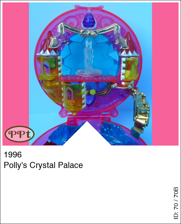 Een grote fles als diamant met Prinses Polly bovenin de dop! Aan de binnenkant een paradijselijk kasteeltje met glitters, goud.