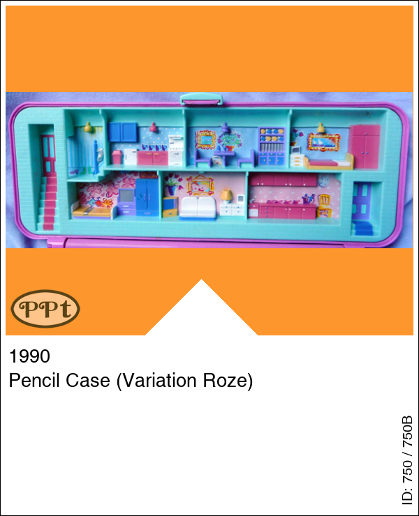 Dit is een rechthoekige doos en word gebruikt om potloden in te doen. Bovenin zie je een inrichting van een huis zoals een keuken, huiskamer, 2 slaapkamers. Met Midge, Polly, stolpje,puntenslijper.