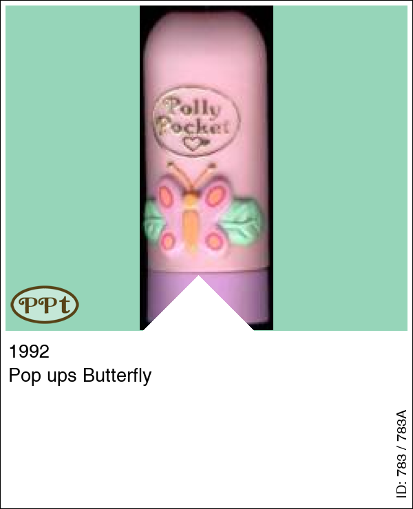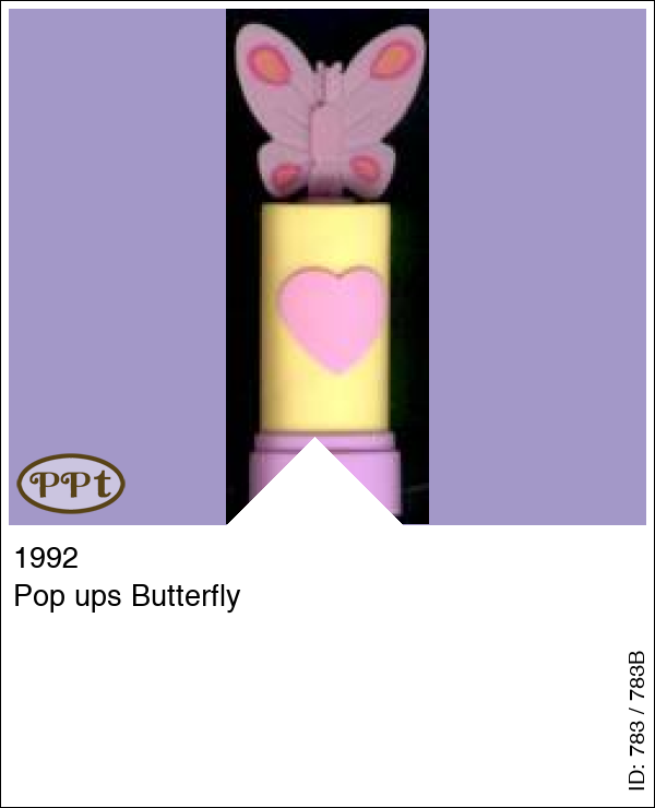 Pop ups Butterfly Lipstick roze met vlinder en wanneer je deze open maakt is hij geel met een roze hartje, je draait de lipstick omhoog en dan komt er een roze vlinder tevoorschijn met daarop een popje.