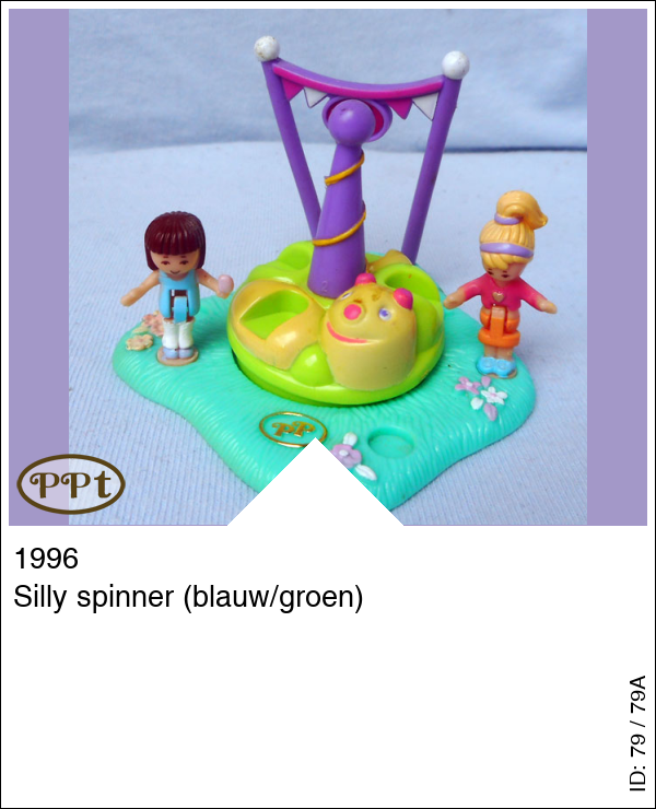 Silly spinner (blauw/groen)Update: 16-02-2023 De Kermis attractie genaamd de rups, en deze kan je rond laten draaien door het paarse stokje. Met Lauren en Polly.