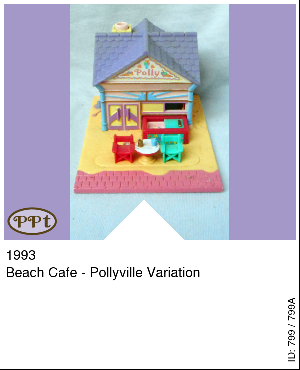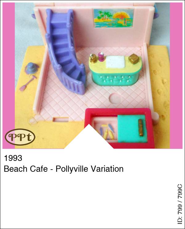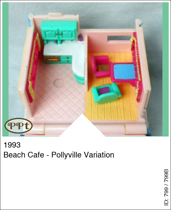 Dit is het cafe met een terrasje met 2 stoelen en de vriezer met ijsjes. Binnenin is de bar met de trap naar boven en daar heb je de keuken en nog een lekker zithoekje met echt draaiende stoelen. Met Polly.