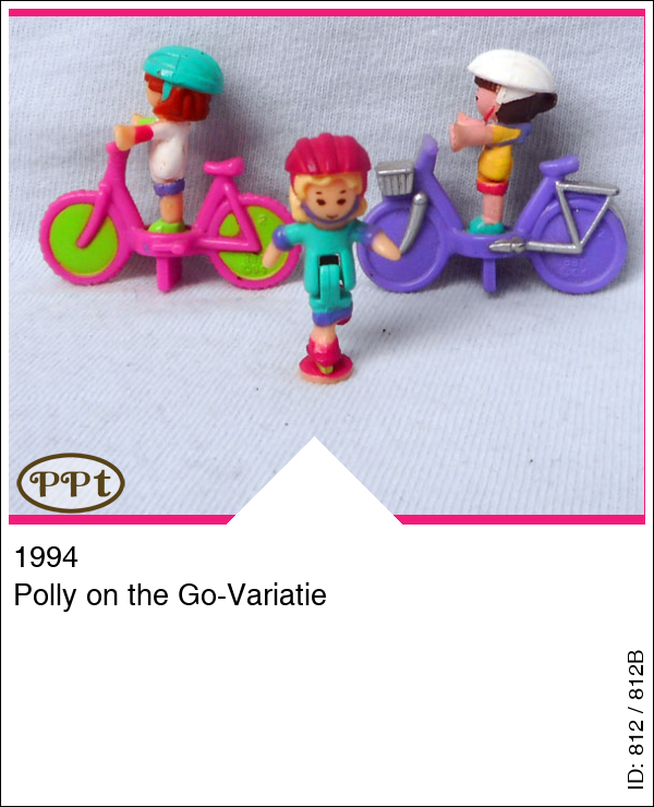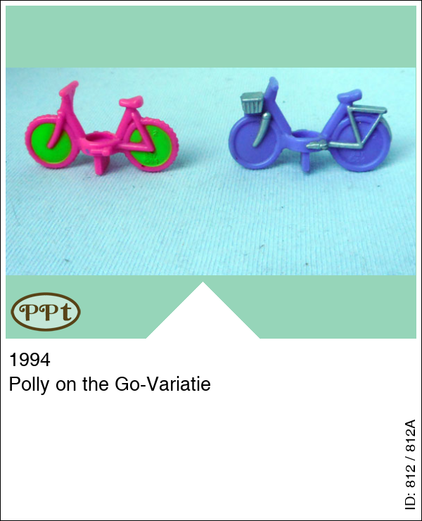 Polly on the Go-VariatieUpdate: 17-02-2023 Dit zijn 2 fietsjes. Een paarse fiets met zilver mandje voorop en een roze fiets met groene spaken. Met Polly op haar skates, Daisy en Michelle.