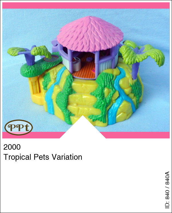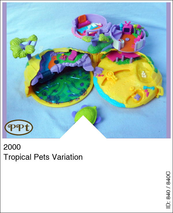 Dit is een huisje op een rots en onder het huisje zit de woonkamer met tv, slaapzak, stoel en mandje voor een diertje. Onder de rots is het strand waar de schildpad zijn eitjes heeft gelegd en aan de andere kant zie je een waterval en diertjes die onder water zwemmen. Met Polly, de grote schildpad, 3 kleine opeenvolgende schildpadjes, 2 koala's en de papegaai.