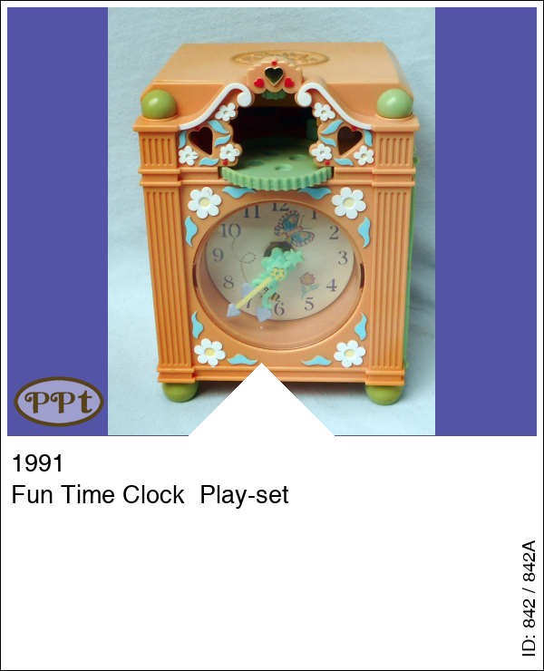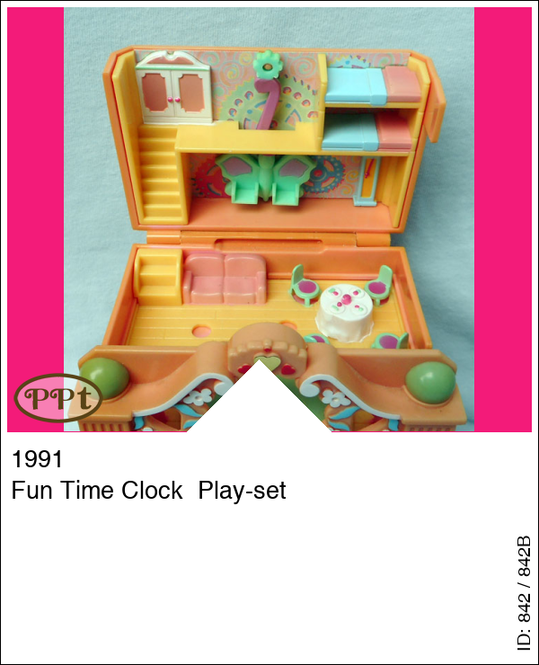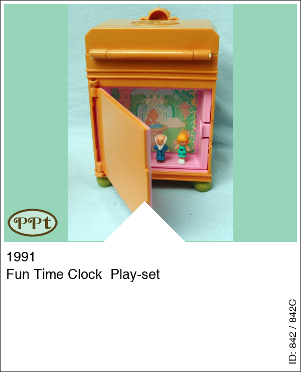 Dit is een klok die het echt doet en bovenop zie je een huiskamer als je het dekseltje opendoet. Achterin is een geheim vakje waar je spulletjes in kunt opbergen en daarachter zit de batterij van de klok. Met Polly, mrs. Chime, Midge, Vadertje tijd.