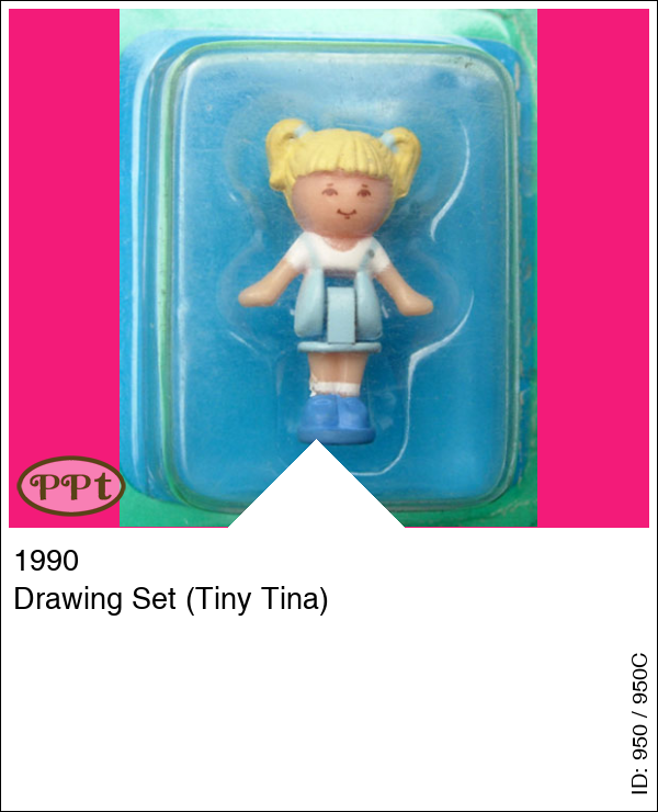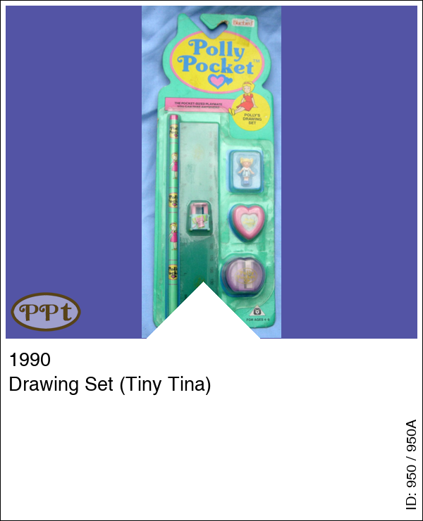 Dit is een schrijfset met Tiny Tina, en bij haar zie je een lineaal met daarop een tafeltje en dit zit er vast op, gum (hartje), potlood en een puntenslijper.