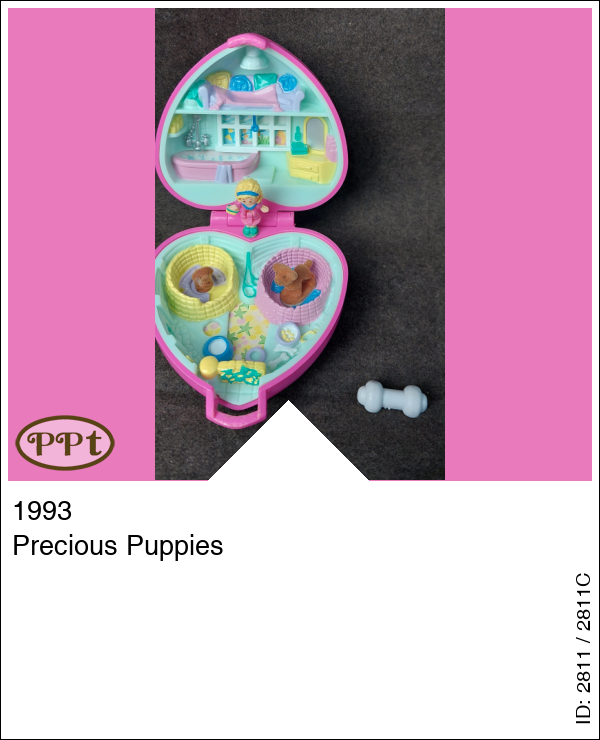 Precious PuppiesUpdate: 28-03-2024 Roze hartje met 2 hondenmandjes en een ligbad en bedje. Met Polly en Rags het op 2 pootjes staande puppie en Tinker de grotere hond. en extra botje.